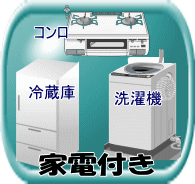 | 台所に備え付けの 冷蔵庫・洗濯機・ガスコンロ・電子レンジ・炊飯ジャー ちゃぶ台 | ||