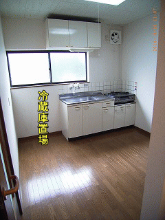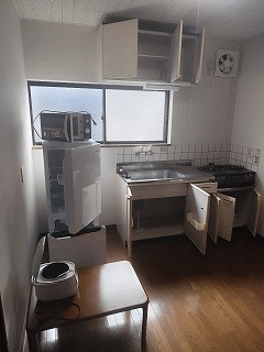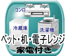 台所に備え付けの 冷蔵庫・洗濯機・ガスコンロ・電子レンジ・炊飯ジャー ちゃぶ台 |