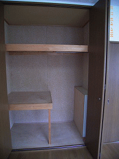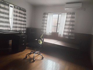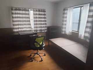 お部屋に備え付けの ベット・机・椅子・カラーボックス・カーテン WIFI付きインターネット無料 |