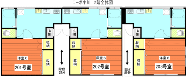 ![]() ★部屋と部屋とが階段挟んでいるので 隣のお部屋の音が通常の木造アパートより聞こえにくい間取りになっています。 |