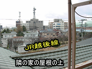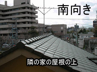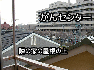 | 南向きのベランダの外は隣家屋根 高い建物は病院のがんセンター、テレビ局BSN くらい 外から覗かれる心配がないので気にせず洗濯物全部干せます | ||