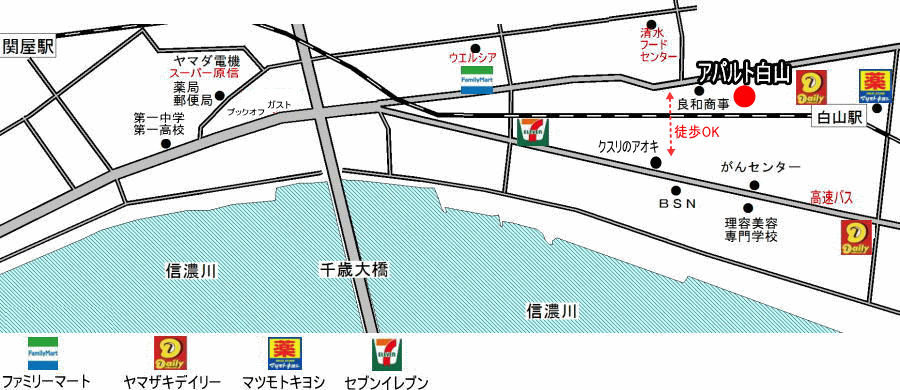 | 徒歩圏内に白山駅や清水フードセンター、ドラックストア、コンビニ、新潟駅行きのバス停があります | ||