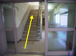 | 郵便物は基本ここのポストに入る いらないチラシは下にあるゴミ箱に捨てられる マンション奥の入口②の玄関ホールから階段上へ | ||