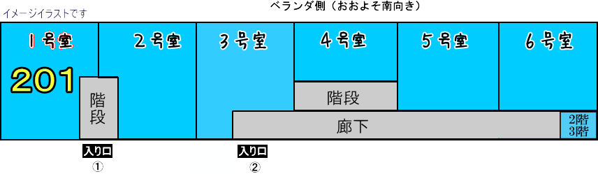 | 通路に学生さんが使う自転車置いています | 階段で3階へ | ||