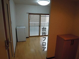 | 台所フロア広いです。 電子レンジ収納ラックなどたくさん置けます | ||