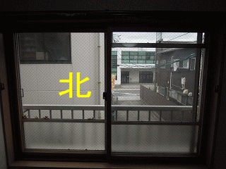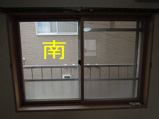 | 部屋の窓は2重サッシ 南向きの窓の外は一般住宅隣家のカベ部分 | ||