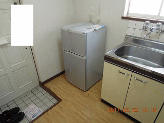 | 玄関部分 靴箱はありません。 キッチンには窓があり換気などできます。 2口ガスコンロ付属 |